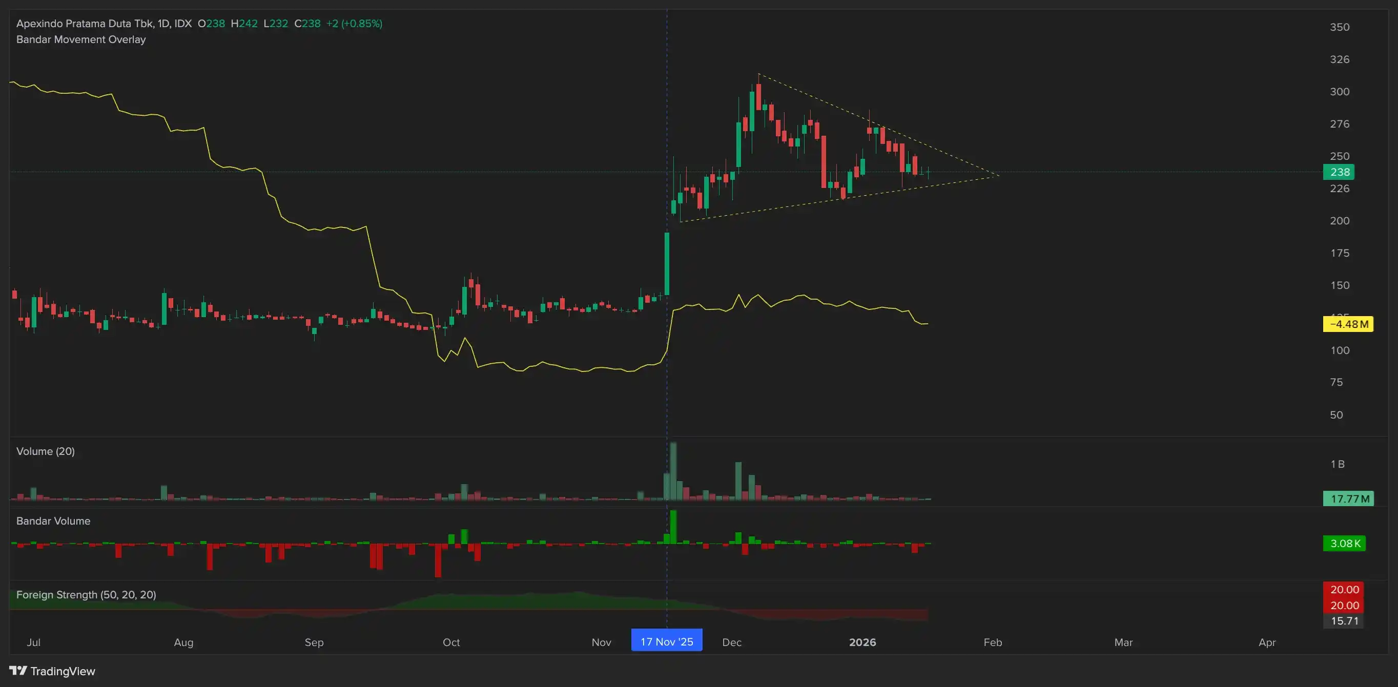 Namun, euforia tersebut bersifat fluktuatif. Sepanjang sisa bulan Januari, APEX menunjukkan volatilitas yang tinggi: